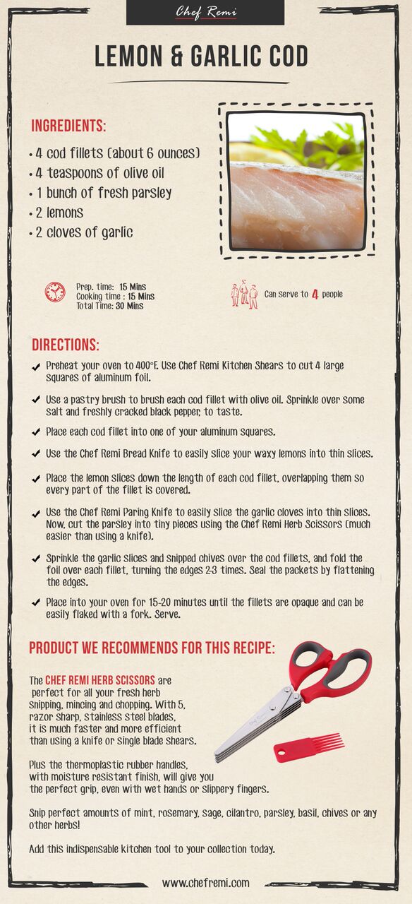 - Preheat your oven to 400°F. Use Chef Remi Kitchen Shears to cut 4 large squares of aluminum foil.