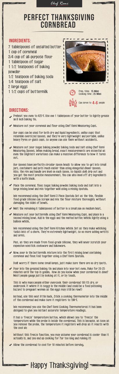 Instead, use this neat little hack. Stick a cooking thermometer into the middle of the cornbread and make sure it registers to 194°F.