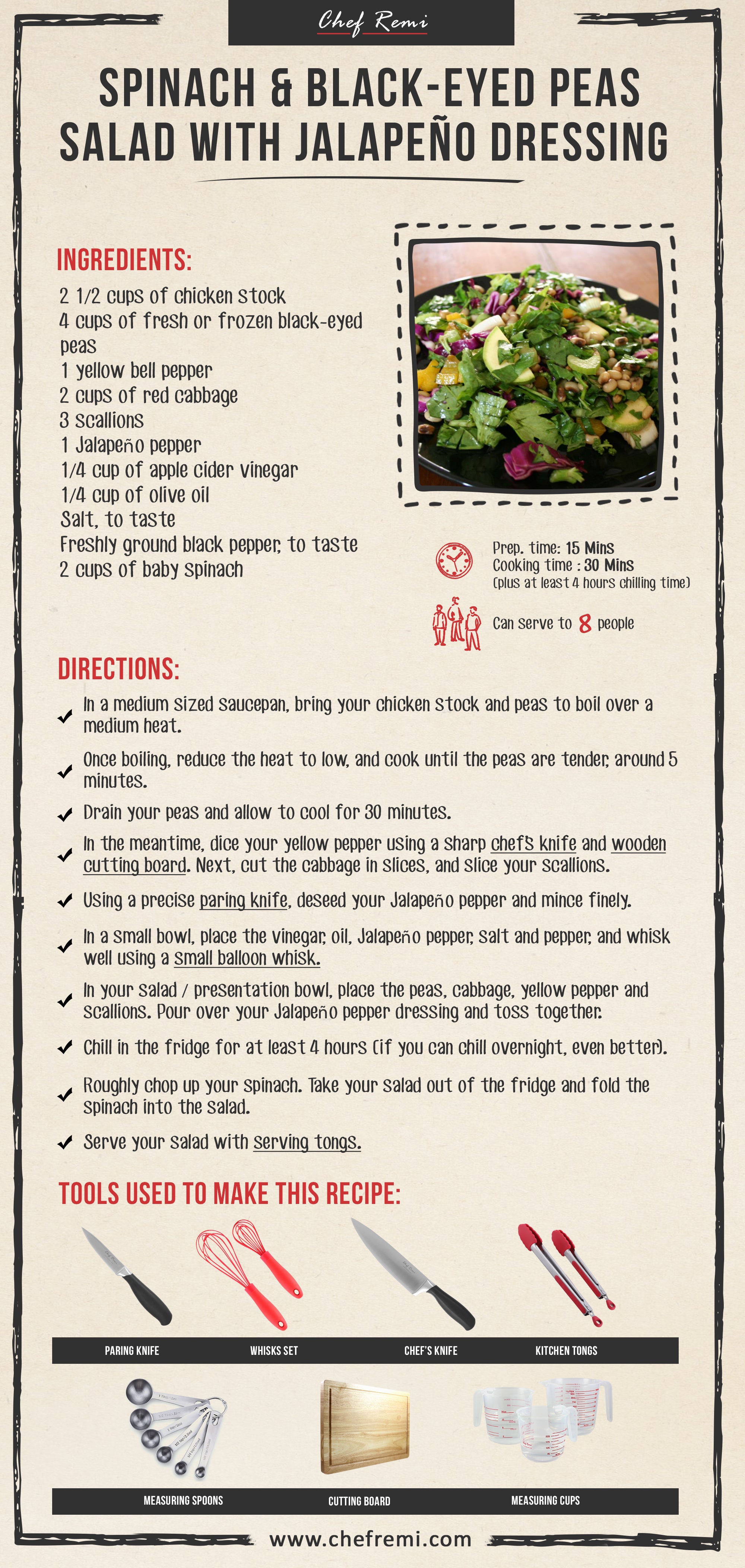 How To Make Your Spinach & Black-Eyed Peas Salad with Jalapeño Pepper Dressing: